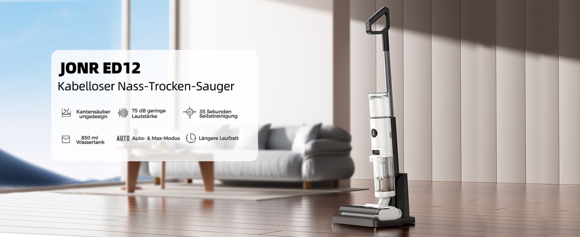 JONR ED12 Nass- & Trockensauger – Kabellos, Selbstreinigend, für Hartböden